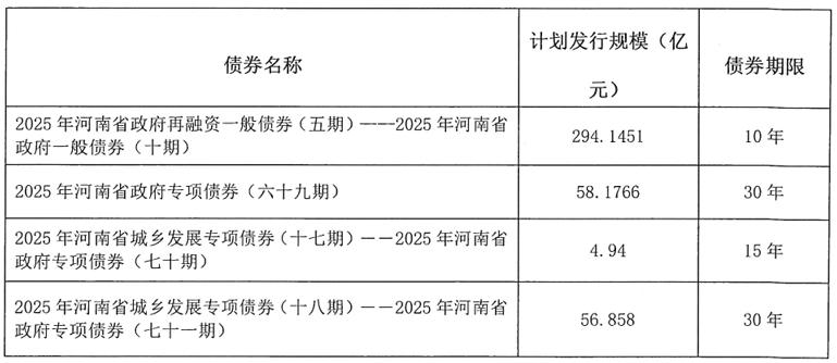 【大河财立方消息】10月13日,河南省财政厅披露2025年河南省政府一般债券(十期)、专项债券(六十九至七十八期)发行文件。